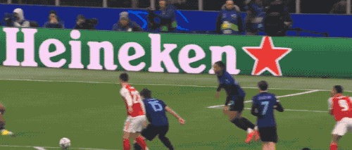 开场之后,阿森纳反客为主,攻势如潮,完全压制国米,蓝黑军团只能被动防守。