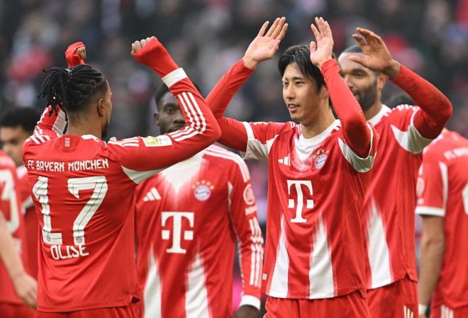 比赛第23分钟,拜仁取得进球!奥利塞开出角球,伊藤洋辉头球攻门,球进了!2分钟后,迪亚斯在禁区左侧起球传中,卡尔后点包抄凌空射门,踢飞了。随后,迪亚斯在禁区左侧小角度射门被封堵出去。